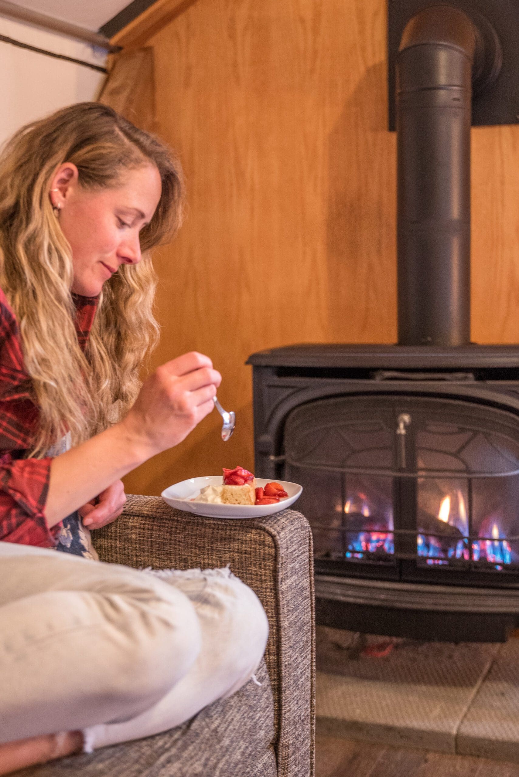 Surround yourself with spectacular mountain and forest views, while still having a luxurious king-sized bed, your own private bathroom with flushing toilet and hot showers, plus a sitting area with a cozy gas fireplace inside your private tent. Or take in the meadow and mountain views from your balcony, surrounded by wild forest.
