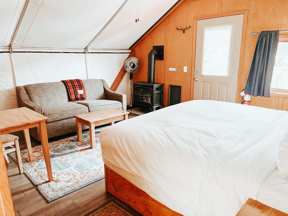 Pet-friendly accommodations include: all glamping tents and cabins, the yurt, and the Elk suite in the lodge. See our pet-friendly getaways page for more details on our pet package and policies.