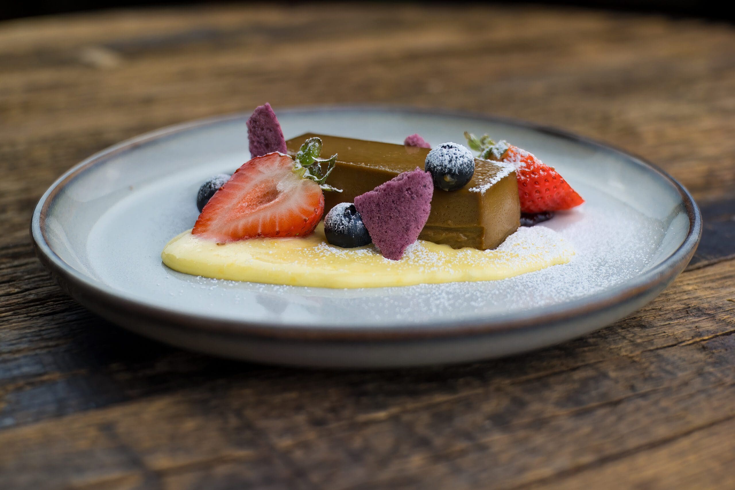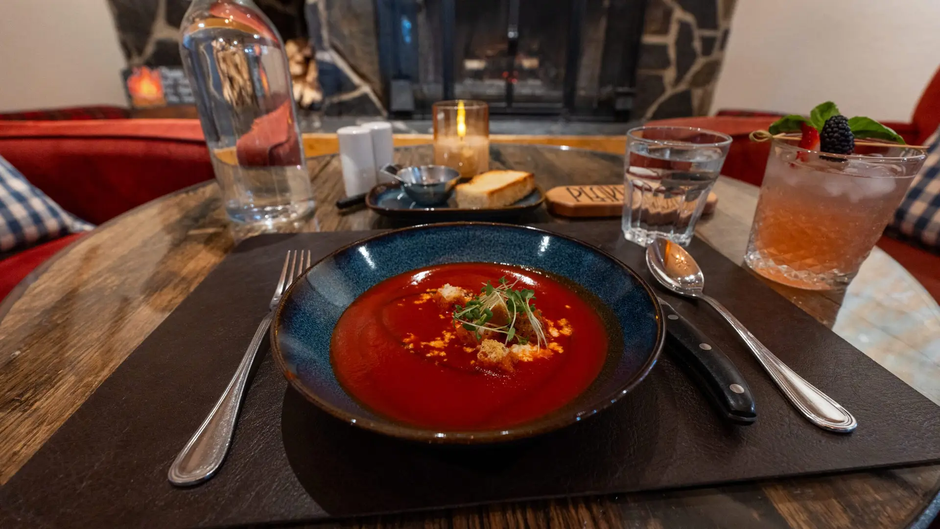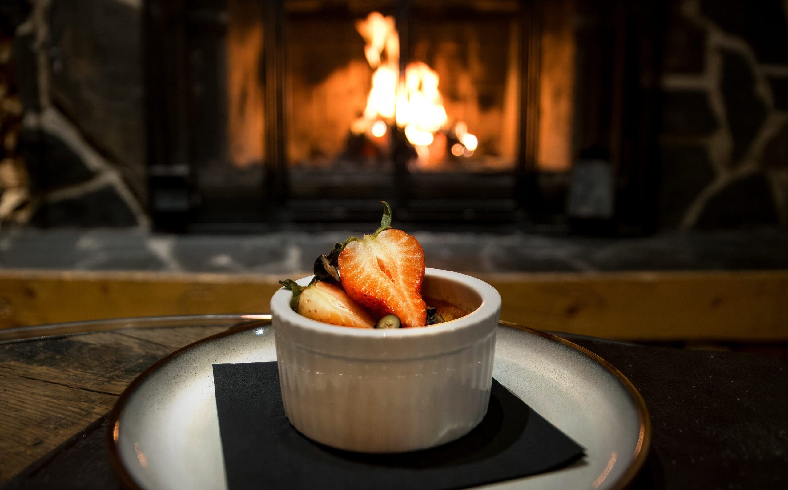 Our three-course plated dinner is the perfect way to end a day in the mountains, providing guests with a fine-dining experience in a communal setting.
