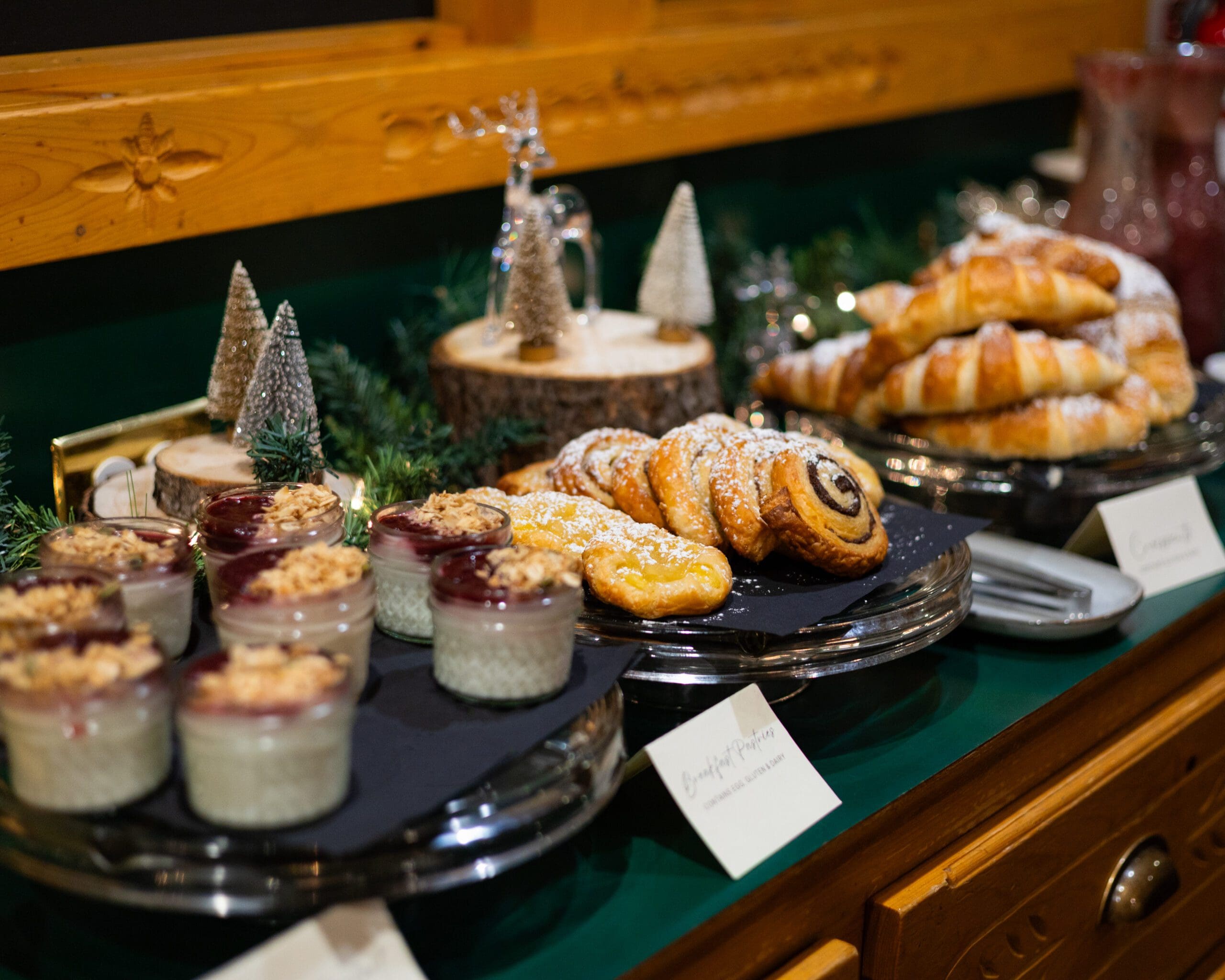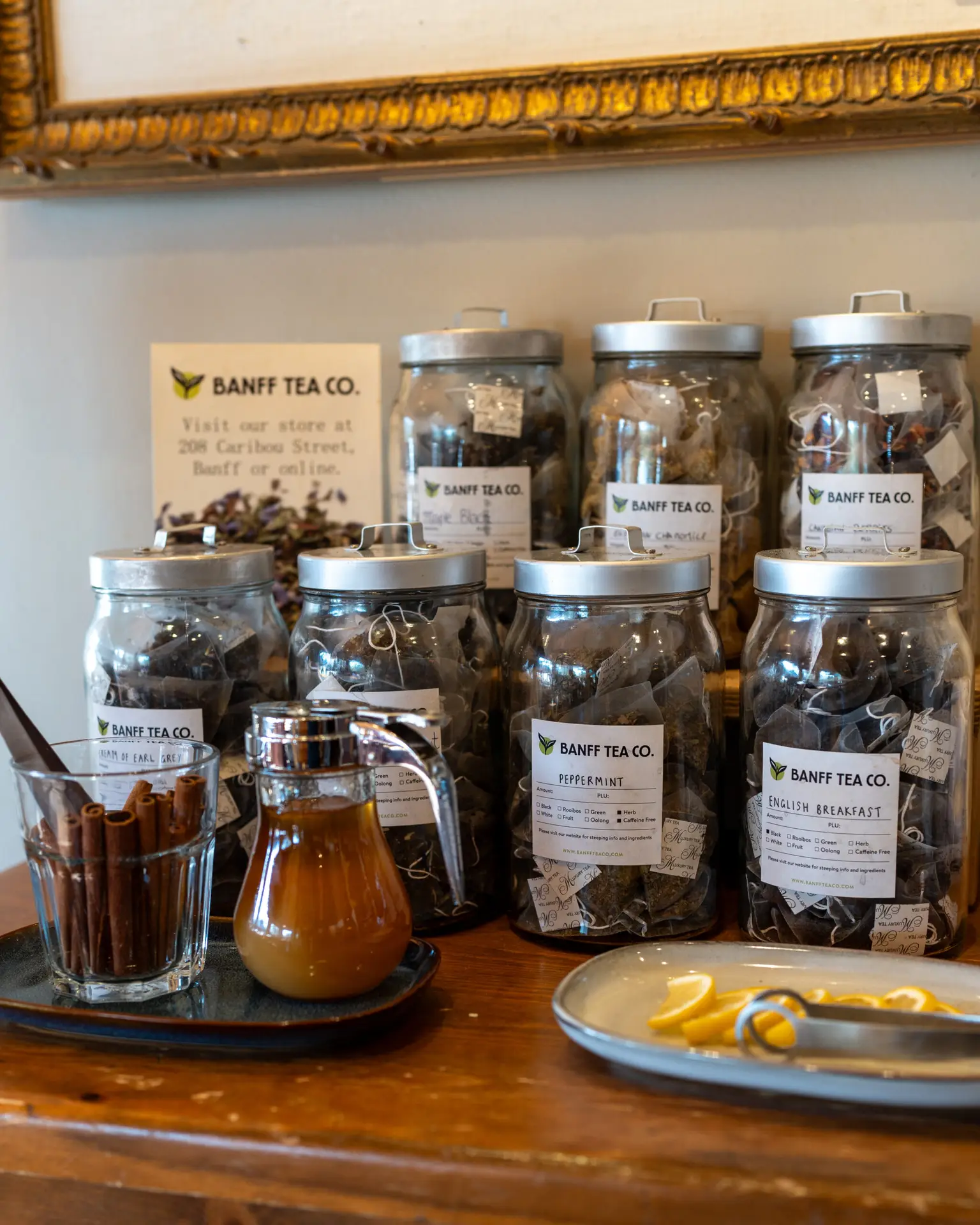 Our afternoon tea includes freshly-baked sweet treats, and a luxurious charcuterie board with an assortment of local meats, cheeses, and fruits. And it wouldn’t be complete without a wide selection of premium Canadian tea blends from Banff Tea Co., and piping hot freshly brewed coffee.