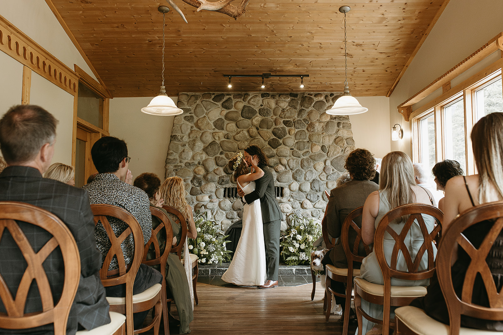 Experience the magic of an intimate mountain wedding or elopement at our enchanting wilderness resort in Kananaskis, Alberta, just south of Canmore and Banff. No matter whether you choose to have your event indoors in our charming lodge, or outdoors on our beautiful patio, you will have a stunning panoramic Rocky Mountain backdrop.