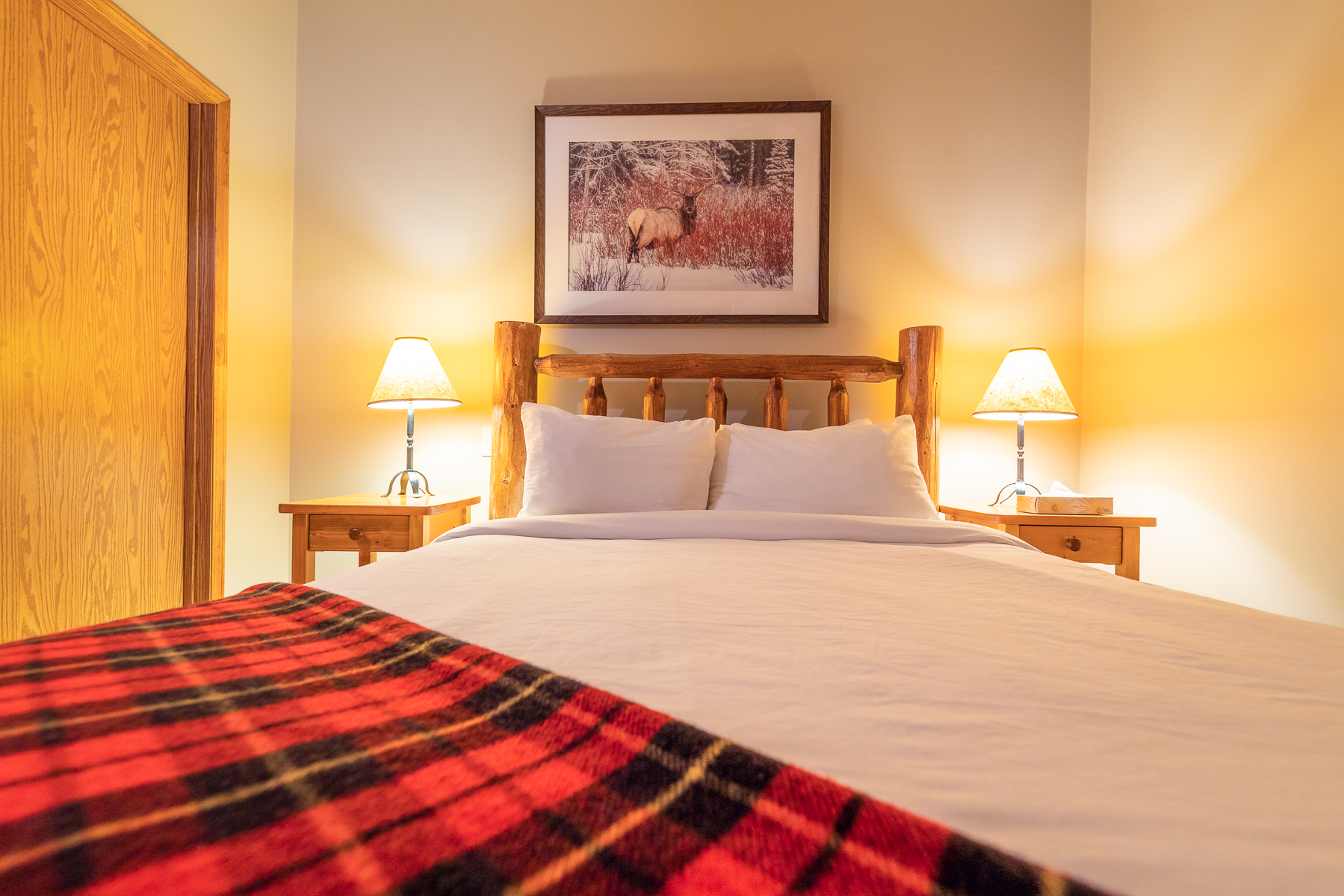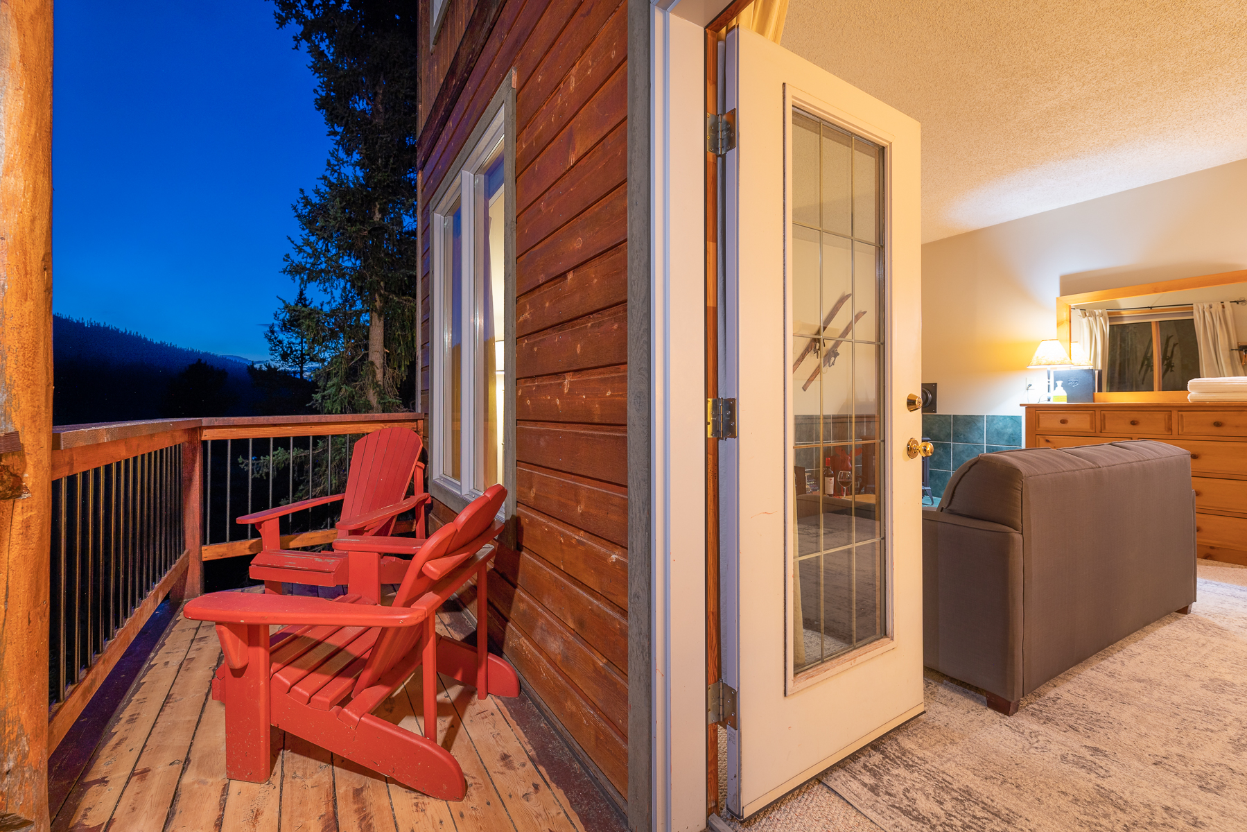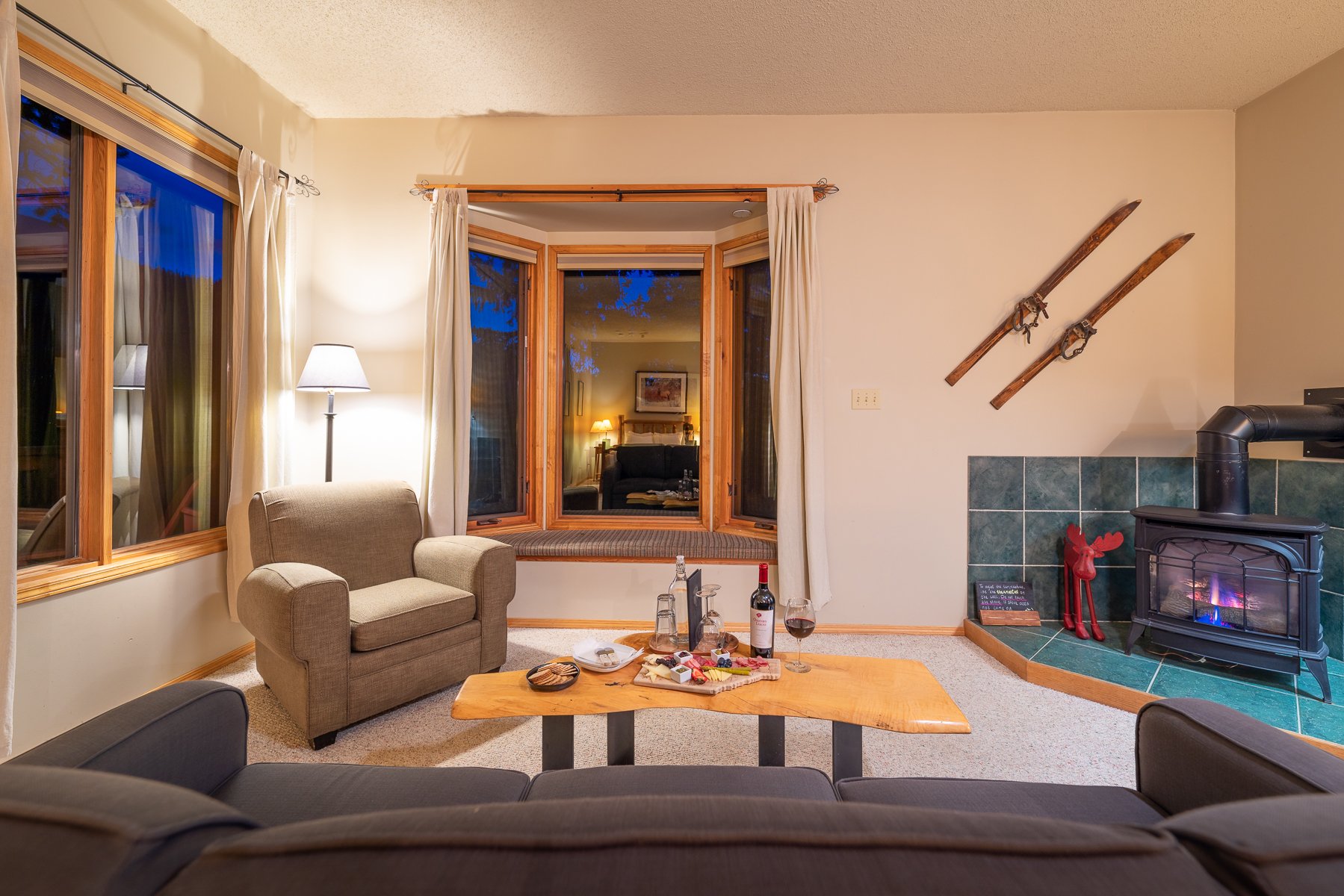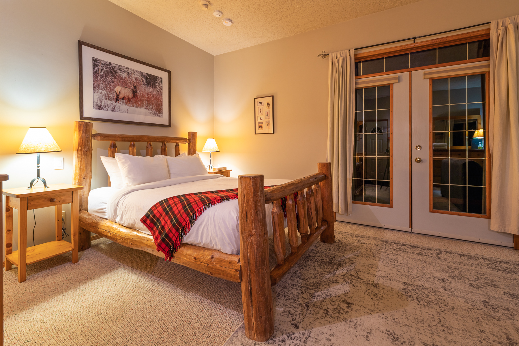 Enjoy a stay in the Elk Suite: our pet-friendly lodge room. Perfect for a hotel-style stay with a dash of alpine charm, you’ll enjoy a spacious and well-appointed room, featuring a private entrance and balcony, breathtaking mountain views, a sitting area with a fireplace. Being the main lodge, you’ll also have convenient access to the restaurant, WiFi, and other amenities.