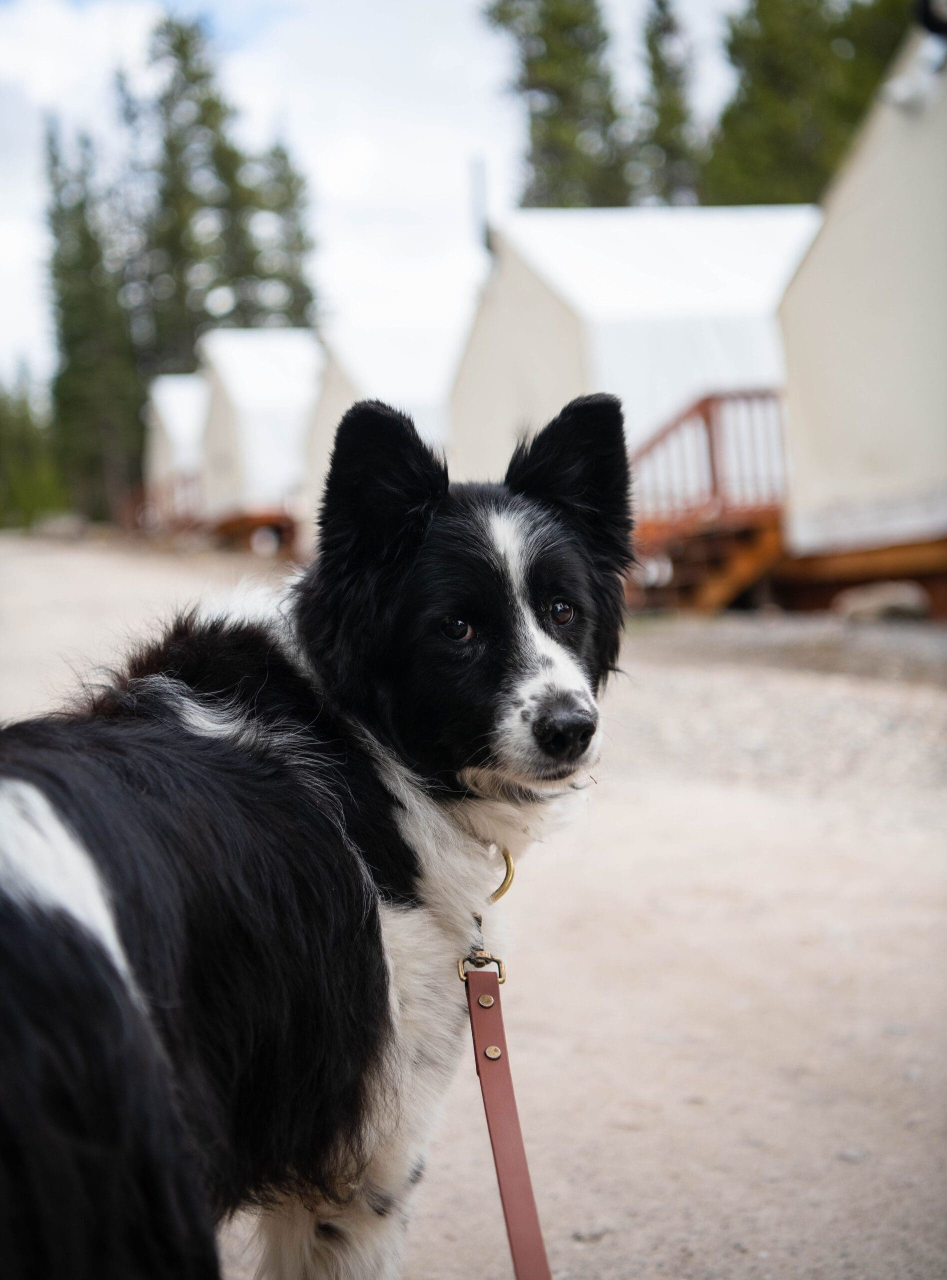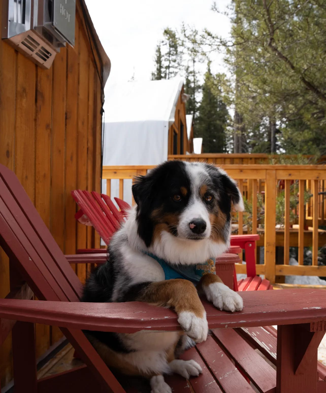 Our dog-friendly accommodations include all glamping tents, the yurt, all cabins, and the Elk Suite (the only pet-friendly room inside the main lodge).