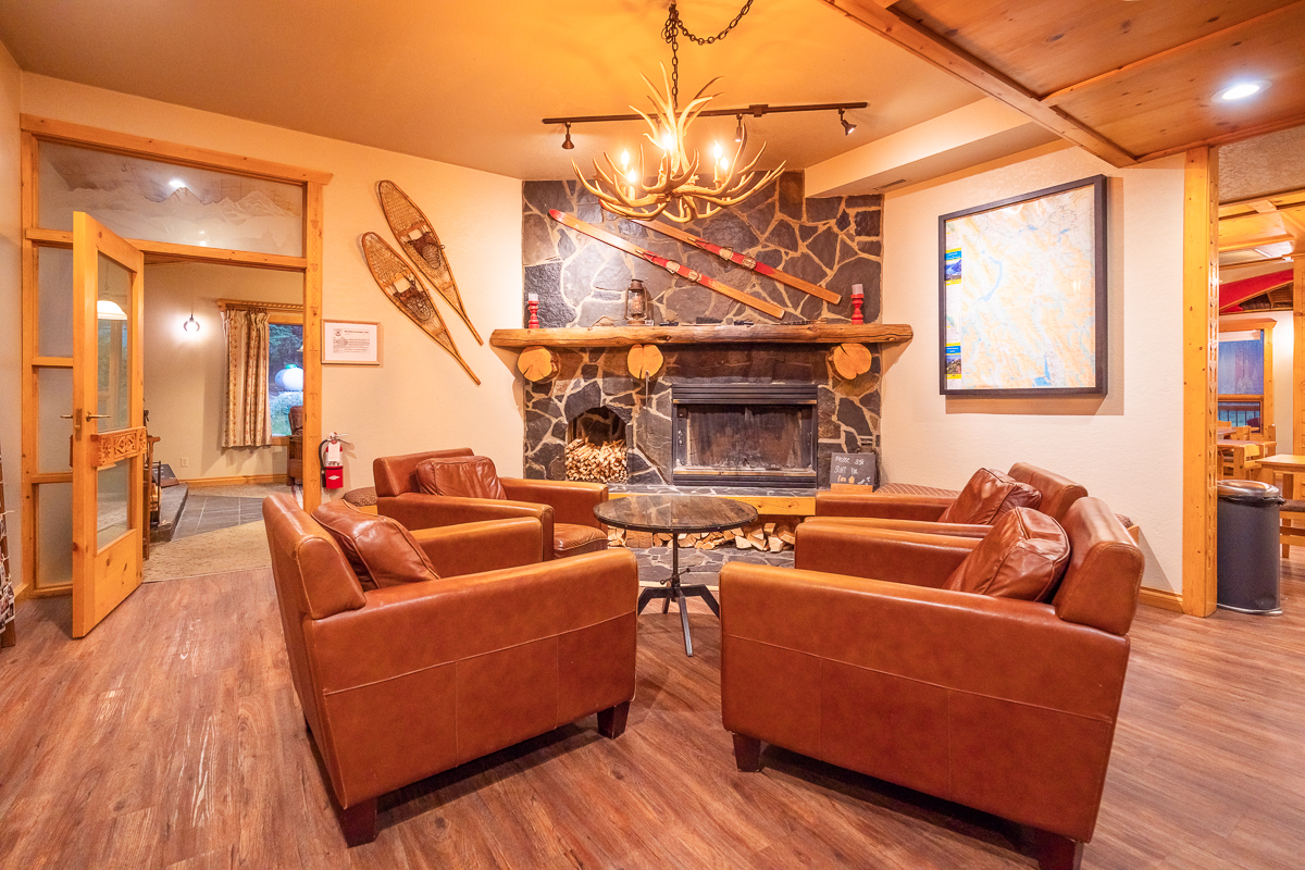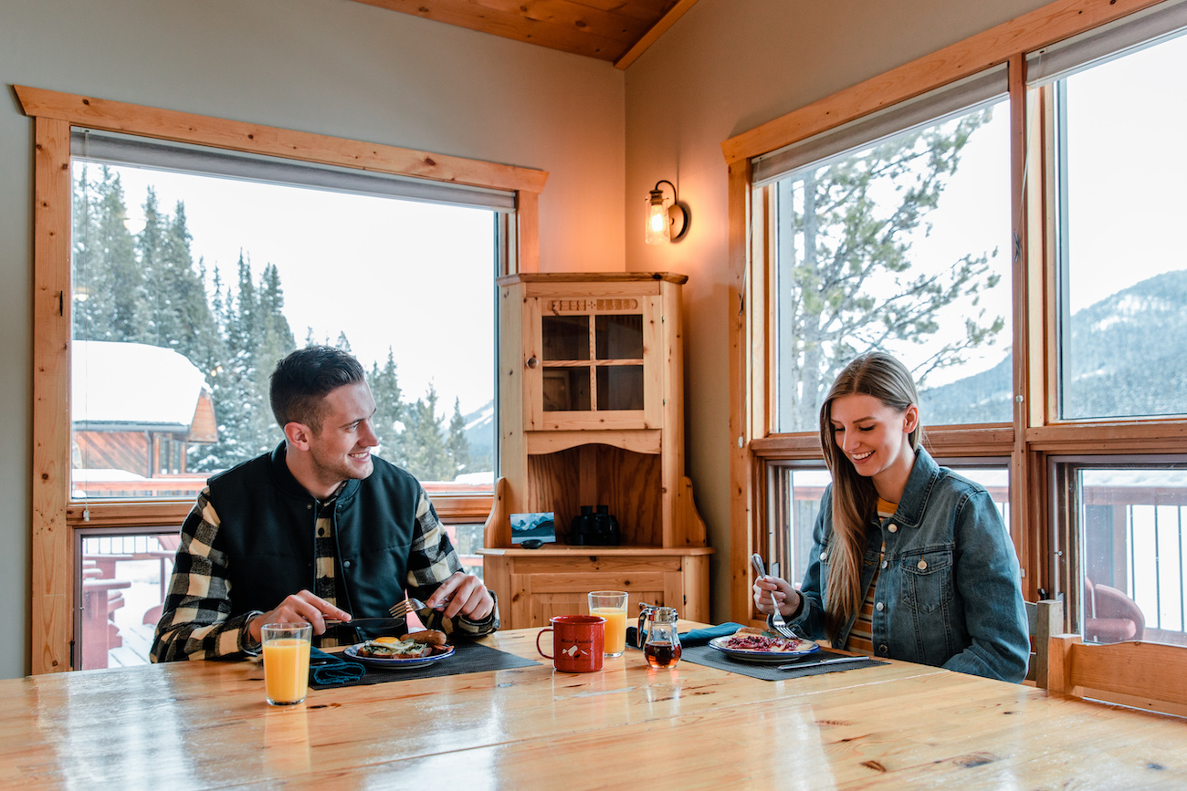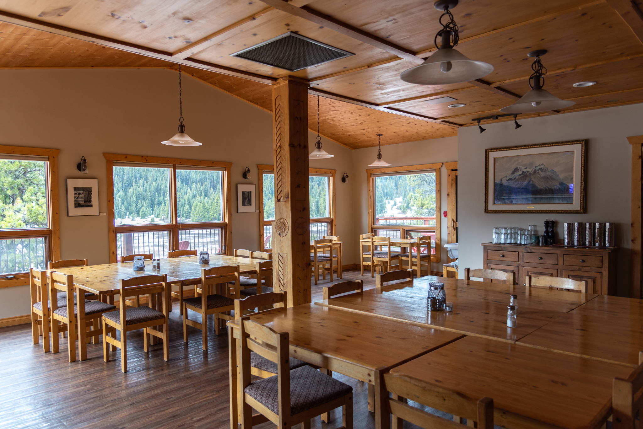 Our cozy lounges in the main lodge allow you to experience the surrounding Alberta mountain wilderness in comfort. There’s no better spot to relax and take in the stunning mountain views, meet other travellers and adventurers, play a board game, or have a little nap in front of the crackling fire.